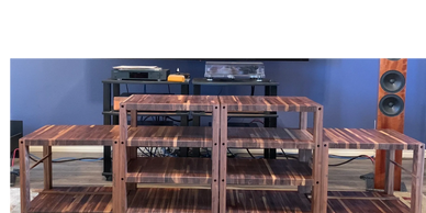 Bookshelf, Monitor, Riser, Tilt-back, Isolation. Made from any hardwood, any height, any size. Tell us what you have and we'll recommend something or tell us what you like.